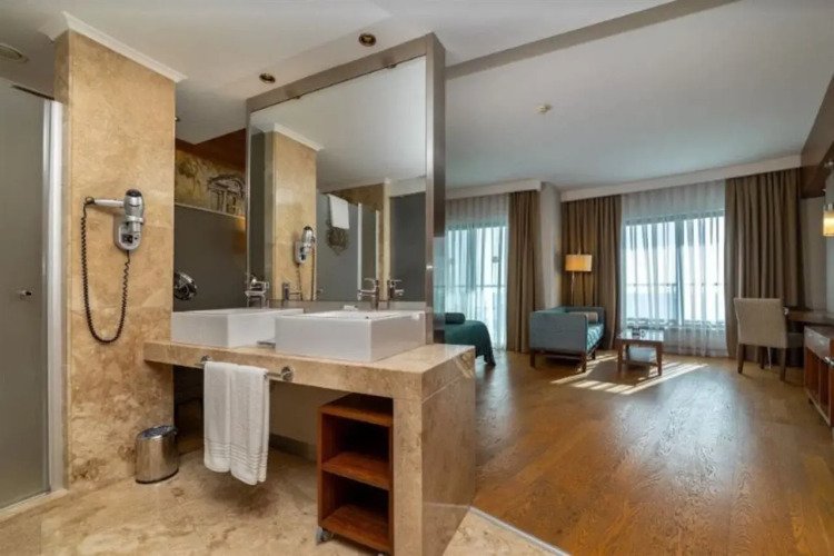 Номер уютно обставлен и оснащён необходимым, чтобы отдохнуть после долгого и насыщенного дня. Имеются душ, телевизор, мини-бар, халат и тапочки. Перечисленные услуги есть не во всех номерах.