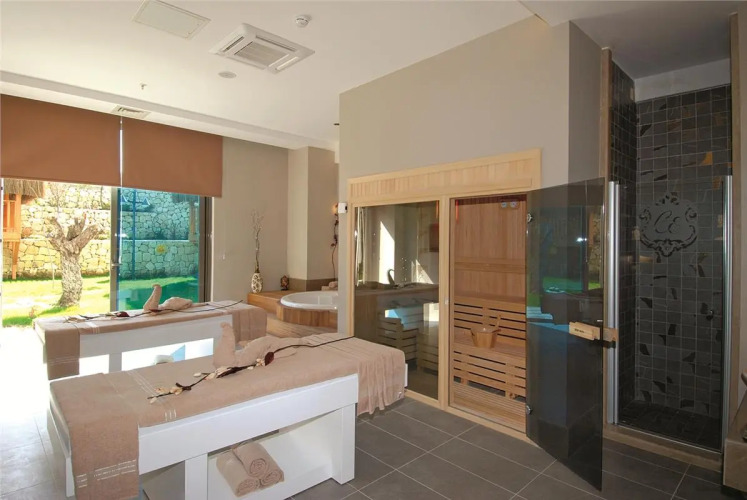 Также для гостей на курорте: массажный кабинет, сауна, паровая баня и спа-центр. Спортивные гости оценят фитнес-центр и мини-гольф. Скучно не будет, ведь на курорте к услугам отдыхающих библиотека и пинг-понг. Любители водных процедур оценят бассейн.