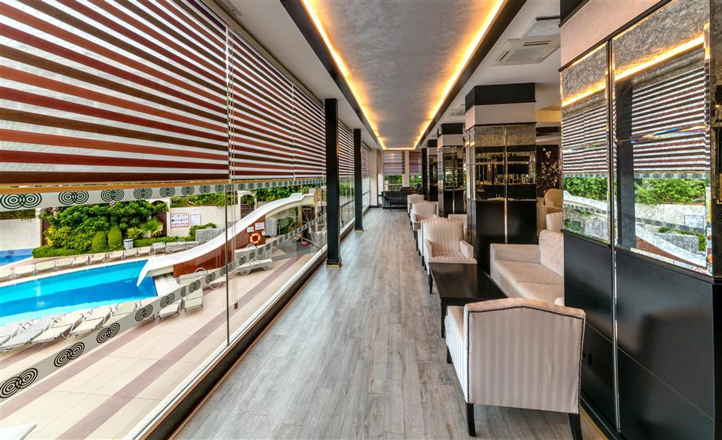 Здесь будем баловать себя водными процедурами: есть бассейн. Удобно для гостей с ограниченными возможностями: на верхние этажи гостей поднимает лифт. Дополнительно: прачечная, химчистка, гладильные услуги, пресса и сейф. Персонал курорта говорит на английском, немецком и русском.