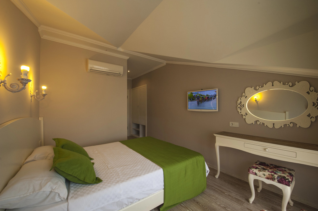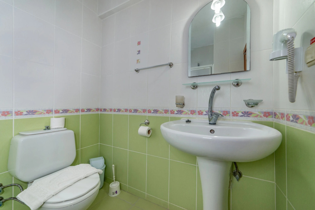 В номере вы найдёте душ и телевизор. Оснащение зависит от выбранной категории номера.