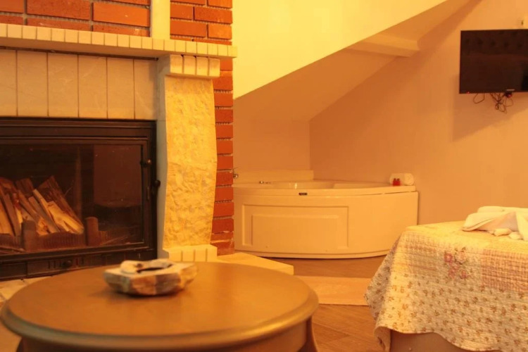 В номере вы найдёте душ, телевизор и тапочки. Оснащение зависит от выбранной категории номера.