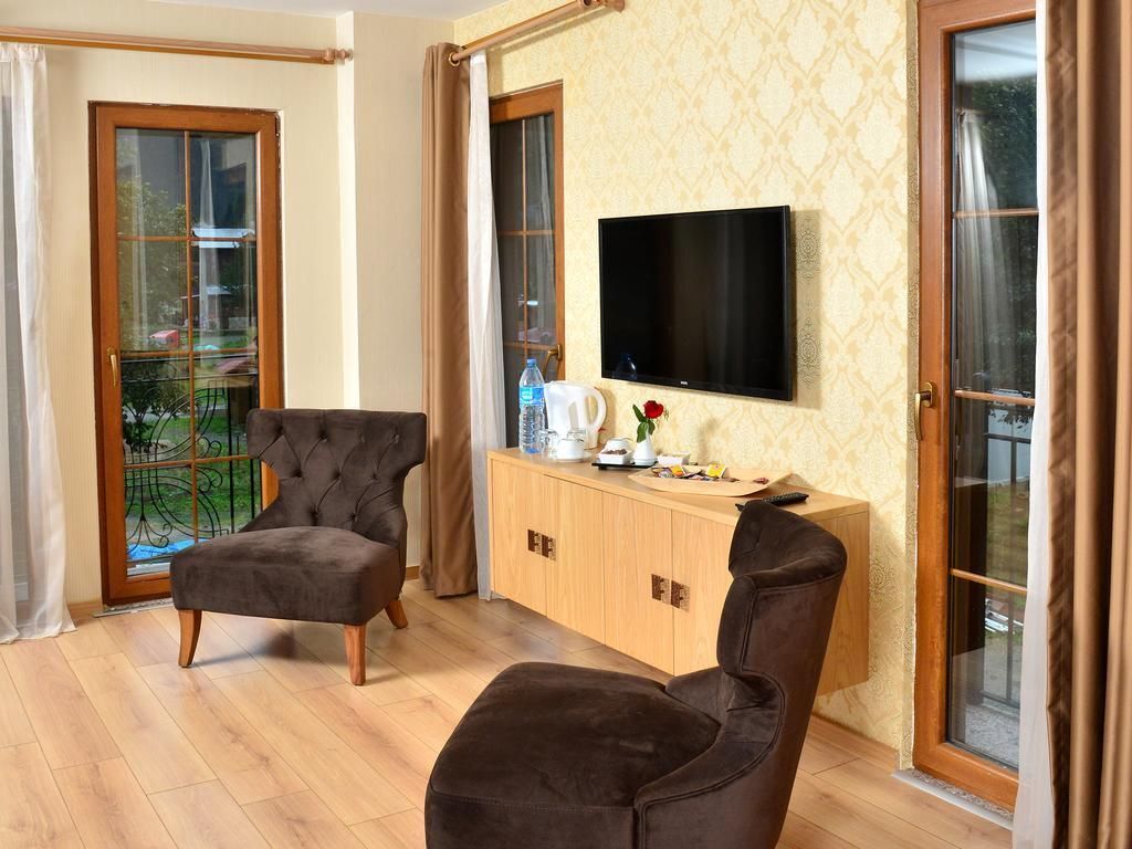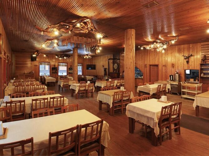 В номере вы найдёте душ, телевизор и тапочки. Оснащение зависит от выбранной категории номера.