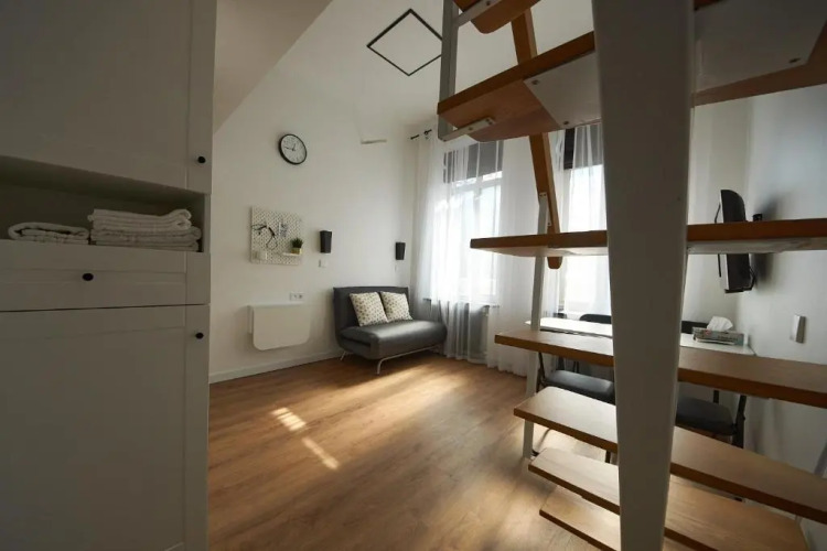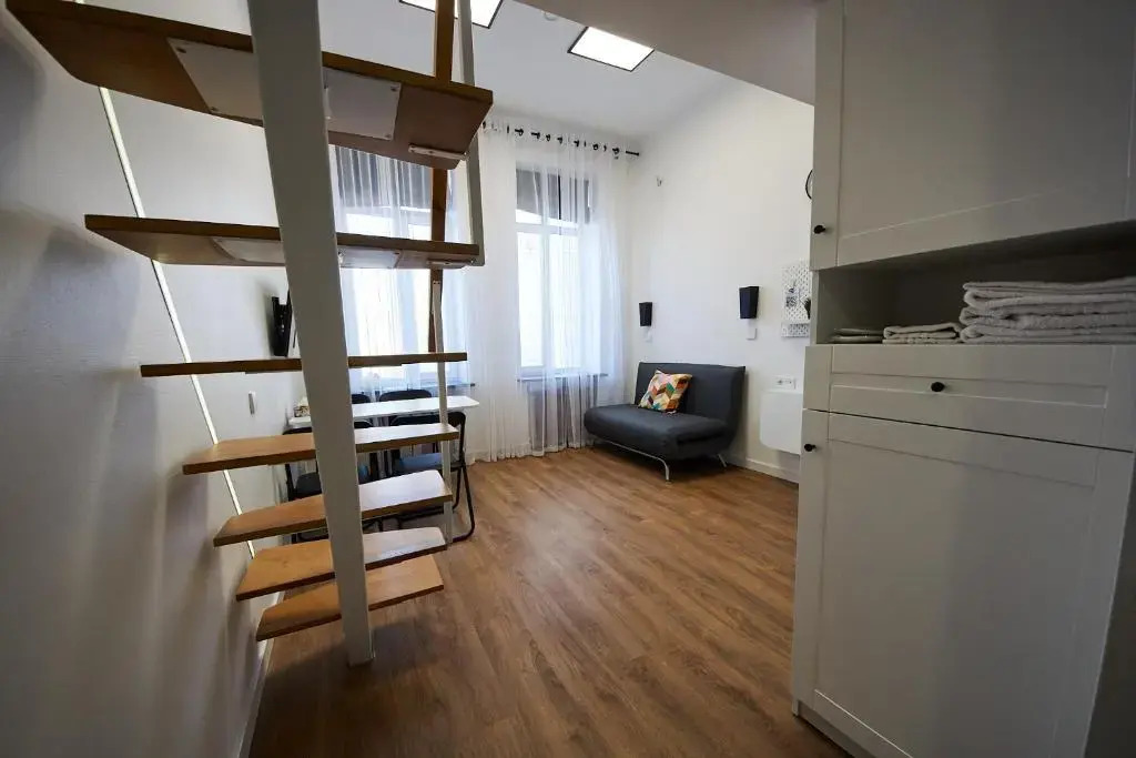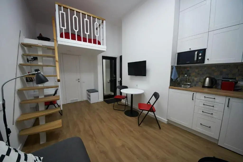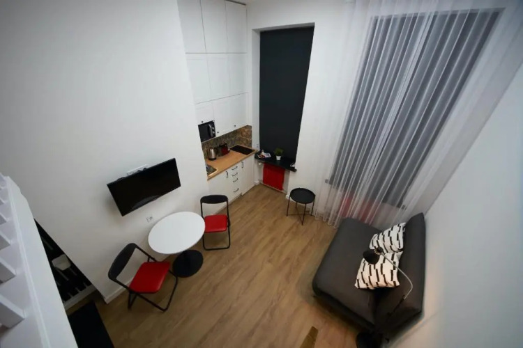 Отель Затишні дворівневі смарт апартаменти 1 звезда, адрес на карте Белая Церковь, 220 Skvyrs'ke Highway 14, 09100, Bila Tserkva, Ukraine, с характеристиками номеров и доступностью онлайн бронирования на площадке vashotel.ru , цены проживания и удобства.