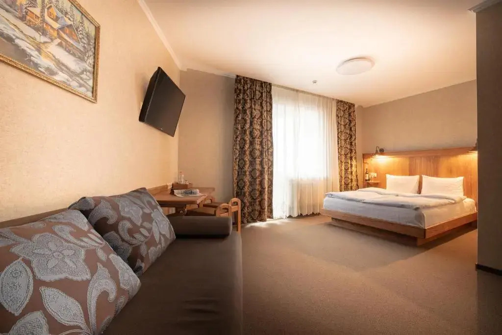Номер уютно обставлен и оснащён необходимым, чтобы отдохнуть после долгого и насыщенного дня. Имеются душ, телевизор и тапочки. Оснащение зависит от выбранной категории номера.