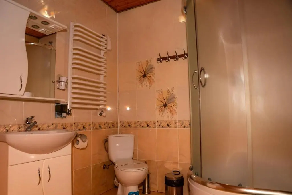 В номере вас будут ждать душ, телевизор и тапочки. Оснащение зависит от выбранной категории номера.