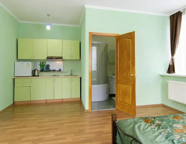 В номере вас будут ждать душ, телевизор и тапочки. Оснащение зависит от выбранной категории номера.