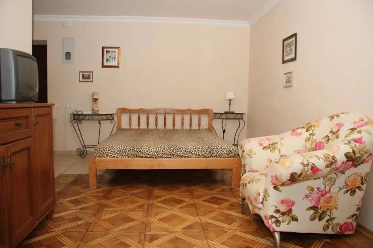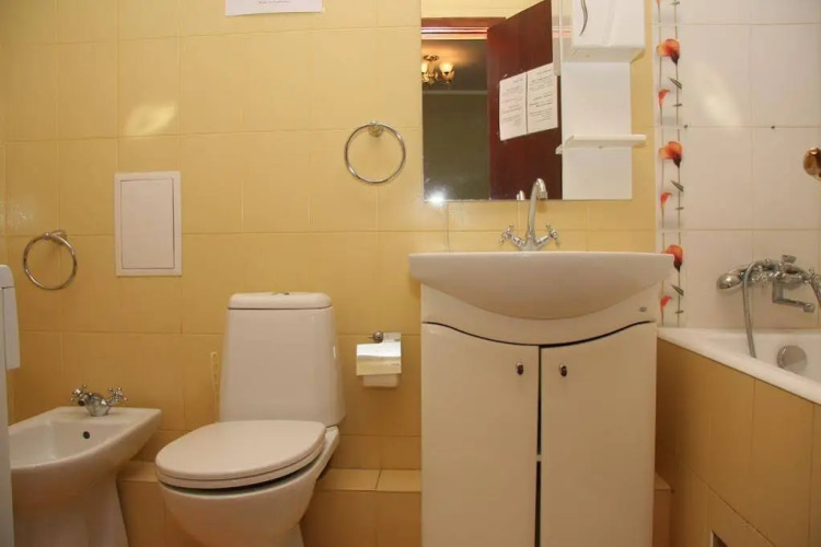 В номере вы найдёте телевизор и тапочки. Оснащение зависит от выбранной категории номера.