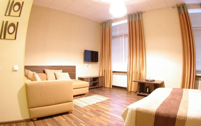 В номере гостей ждут телевизор и тапочки. Перечисленные услуги есть не во всех номерах.