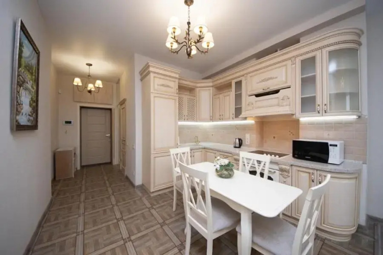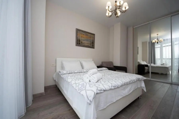 Подходящий вариант для большой компании: апартаменты «Stylish Panoramic apartments Dnipro Sail riverside» располагаются в Киеве. Эти апартаменты находятся в 5 км от центра города. Рядом с апартаментами можно прогуляться. Неподалёку: Петровка, Золотые ворота и Национальная опера Украины.