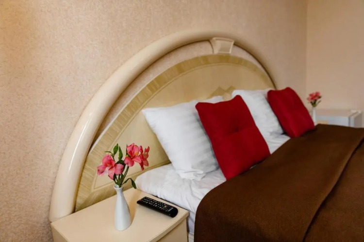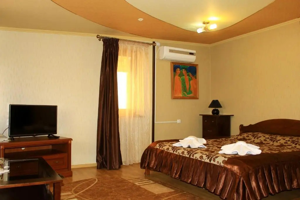 В номере вы найдёте телевизор и тапочки. Оснащение зависит от выбранной категории номера.