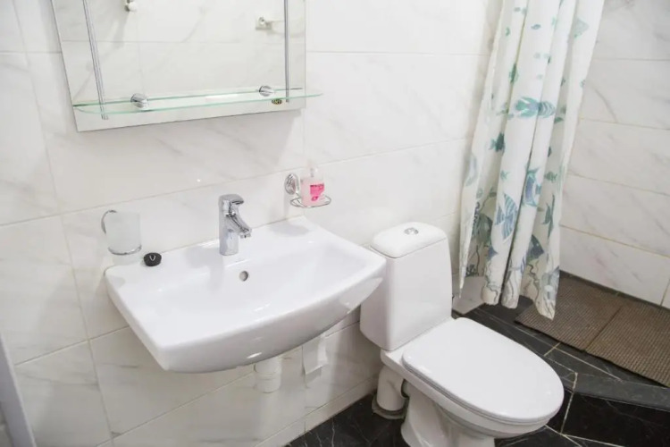 В номере вас будут ждать душ, телевизор и тапочки. Оснащение зависит от выбранной категории номера.