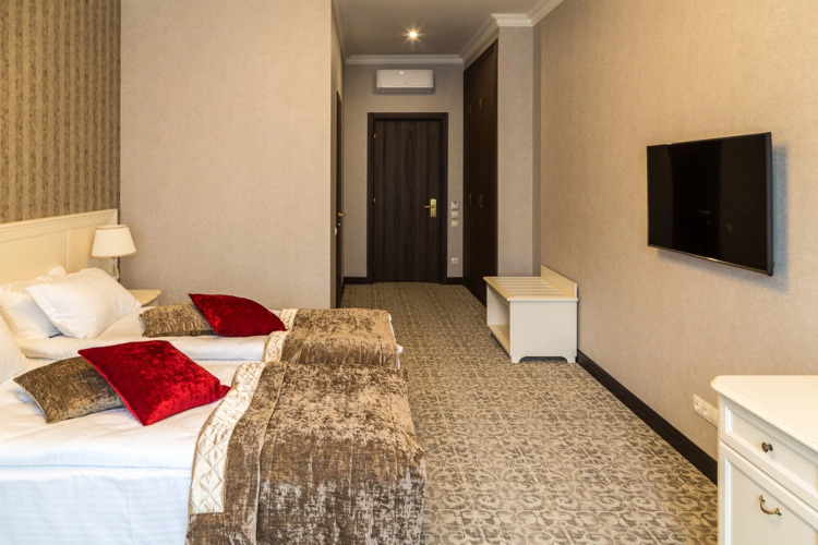 В номере вас будут ждать телевизор. Оснащение зависит от выбранной категории номера.