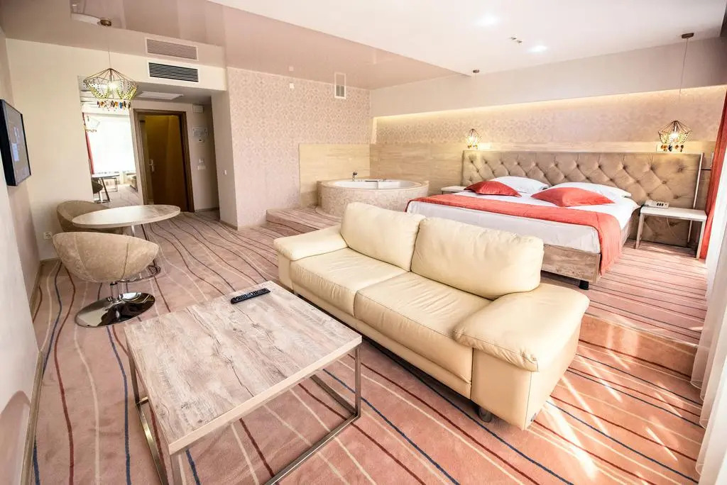 Также для гостей в отеле: массажный кабинет, сауна, солярий, паровая баня и спа-центр. Любители водных процедур оценят бассейн. Можно организовать деловую встречу, переговоры и даже собеседование. Для этого предусмотрен конференц-зал. Дети будут рады! Работает детская игровая комната.