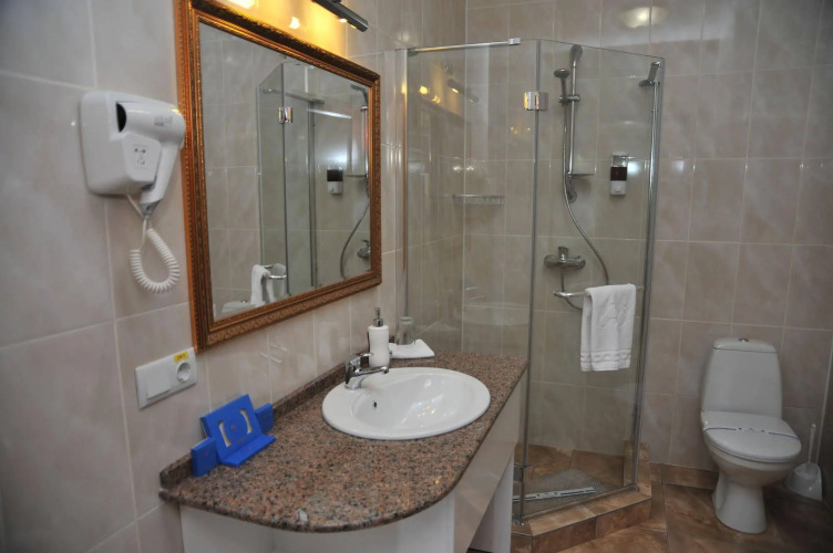 В номере вас будут ждать душ и телевизор. Перечисленные услуги есть не во всех номерах.