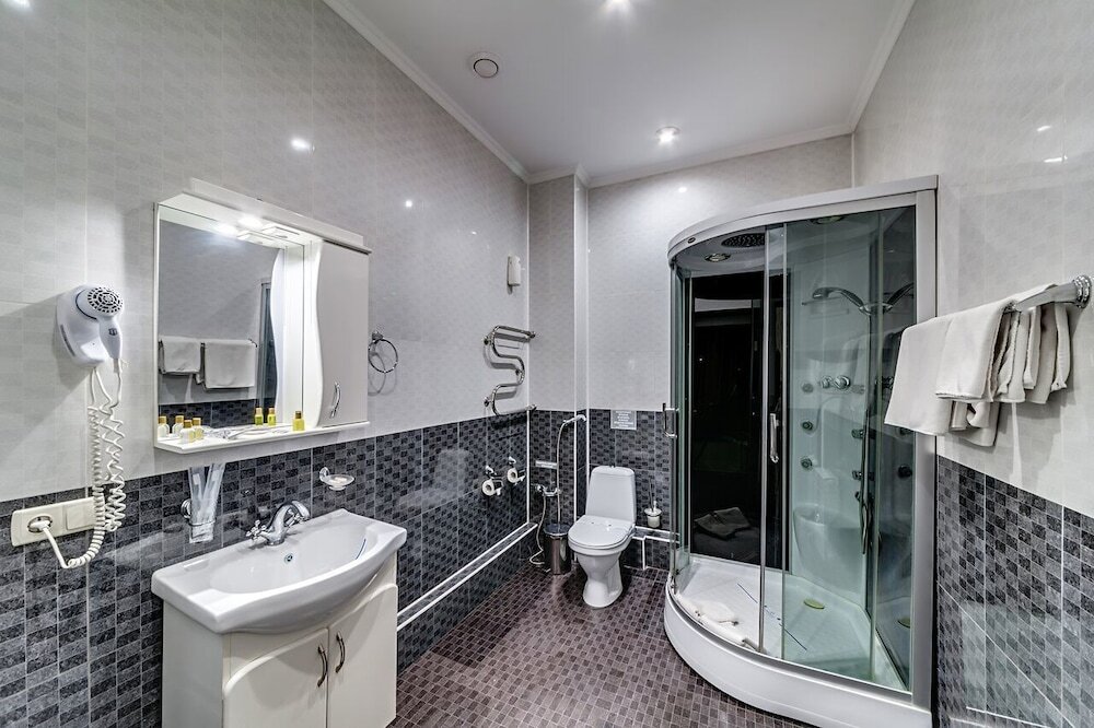 В номере вы найдёте душ, телевизор, мини-бар, халат и тапочки. Оснащение зависит от выбранной категории номера.