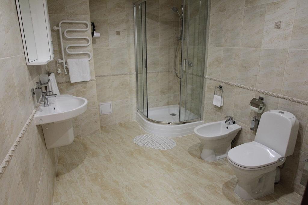 В номере вас будут ждать душ, телевизор и тапочки. Оснащение зависит от выбранной категории номера.