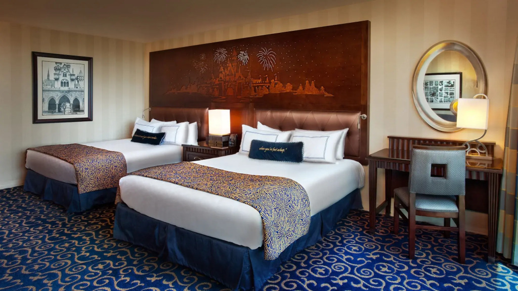 Отель Disneyland - On Disneyland Resort Property предлагает размещение в 990 элегантно оформленных, тихих номерах с современными ванными комнатами и открывающимися окнами. В каждом номере спутниковое телевидение, стол, телефон. По запросу предоставляются гладильные принадлежности и фен.