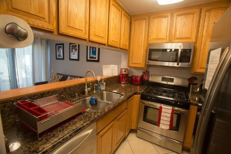 Отель Radiator Springs 2 Bedroom Condo 3 звезды, адрес на карте Анахайм, 1391 S Walnut St, с описанием номеров и доступностью онлайн бронирования на сайте vashotel.ru , цены проживания и удобства.