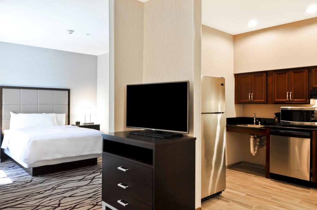 Гости отеля Homewood Suites могут забронировать один из 100 просторных номеров с отдельной кухней, гостиной, спальней и ванной комнатой. В каждом номере есть ЖК-телевизор, холодильник, посудомоечная машина, микроволновая печь. Во всех номерах предоставляется бесплатный Wi-Fi.