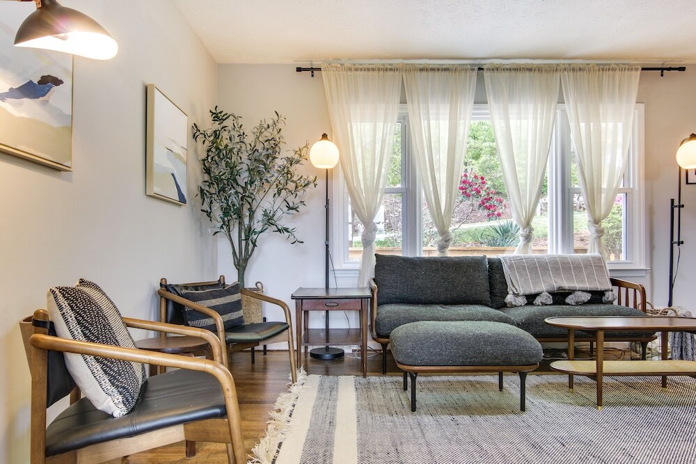 Активный или пассивный отдых — выбор за вами. Коттедж «Mountain Home by Blue Ridge Pkwy: Views & Fire Pit» расположен в Эшвилле. Этот коттедж находится в 10 км от центра города. Рядом с коттеджем можно прогуляться. Неподалёку: Торговый центр Эшвилла.