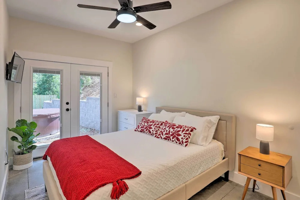 Отель Pet-friendly Asheville Retreat w/ Hot Tub 3 звезды, адрес на карте Эшвилл, 25 Nelon Rd, с характеристиками номеров и возможностью онлайн бронирования на площадке vashotel.ru , цены проживания и удобства.