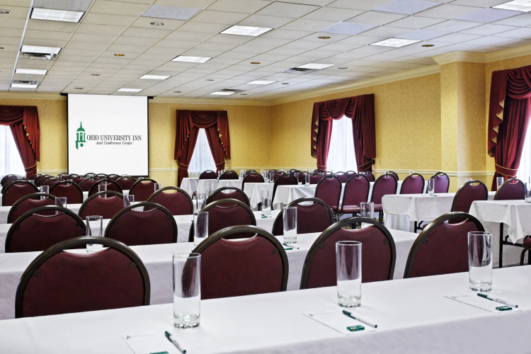Отель THE OHIO UNIVERSITY INN располагает собственным конференц-центром, что очень удобно для деловых людей. Завтрак, второй завтрак и обед подаются гостям в столовой отеля; вы можете также приятно провести время в здешнем баре. Администрация оказывает помощь в проведении встреч и конференций, организации свадеб, бронировании билетов; на стойке регистрации можно заказать трансфер до аэропорта. На первом этаже расположены газетные и сувенирные киоски, магазины.