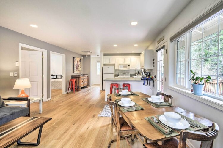 Отель Central 4-acre Cottage w/ Deck: Walk to Bay! 3 звезды, адрес на карте Бейнбридж-Айленд, 7606 NE Bergman Rd, с характеристиками номеров и доступностью онлайн бронирования на ресурсе vashotel.ru , стоимость проживания и удобства.
