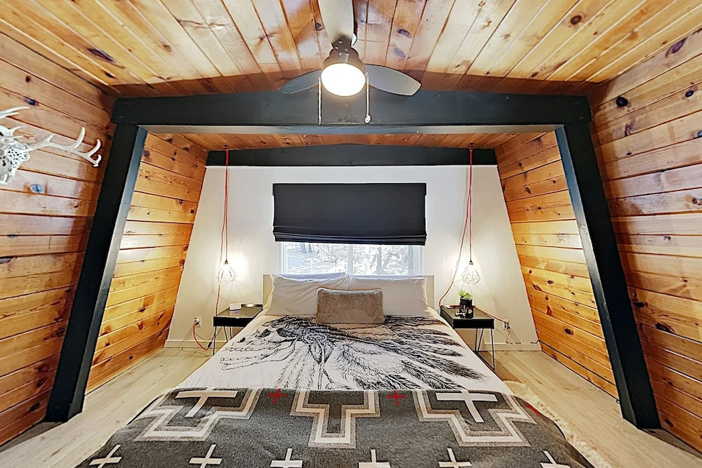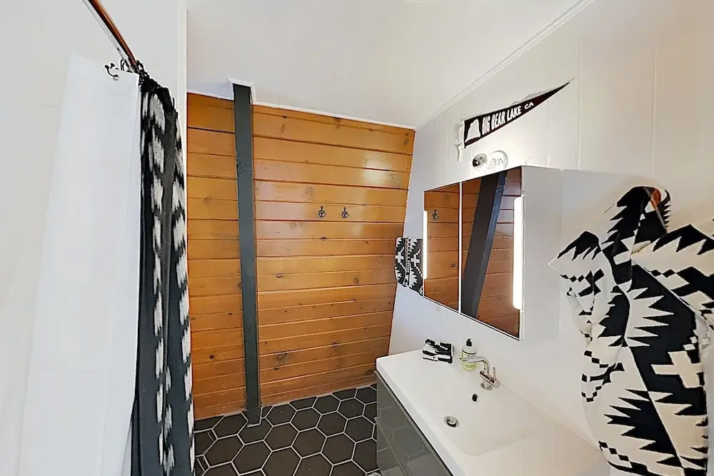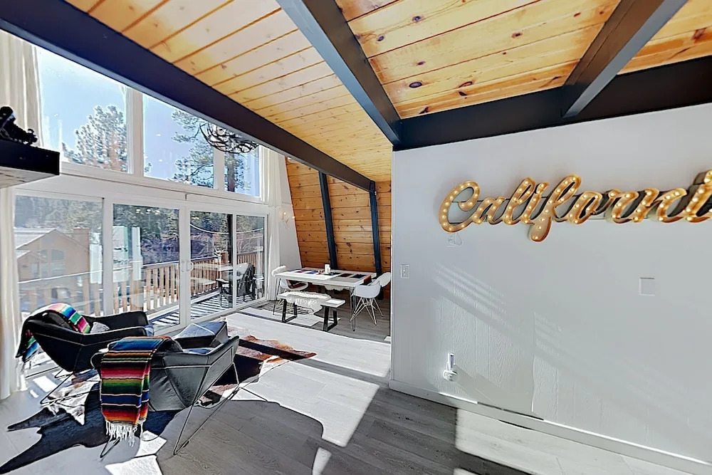 Отель Rustic-chic Remodel W/ Fireplace, Deck & Hot Tub! 3 Bedroom Cabin 3 звезды, адрес на карте Биг-Биар-Лейк, 42930 Sunset Dr, с характеристиками номеров и возможностью онлайн бронирования на ресурсе vashotel.ru , стоимость проживания и удобства.