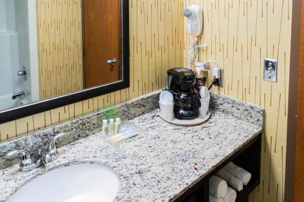 В кондиционируемых номерах (118) отеля Holiday Inn Hotel and Conference Center Big Rapids предоставляются следующие удобства: кофеваркачайник и бесплатные газеты. Предоставляется беспроводной доступ в Интернет. В номерах имеется стол; предоставляется возможность совершать бесплатные местные звонки (могут применяться ограничения). Имеется возможность просмотра кабельных телеканалов премиум-класса. В номерах имеется фен и утюг, гладильная доска. Обслуживание номеров выполняется ежедневно.