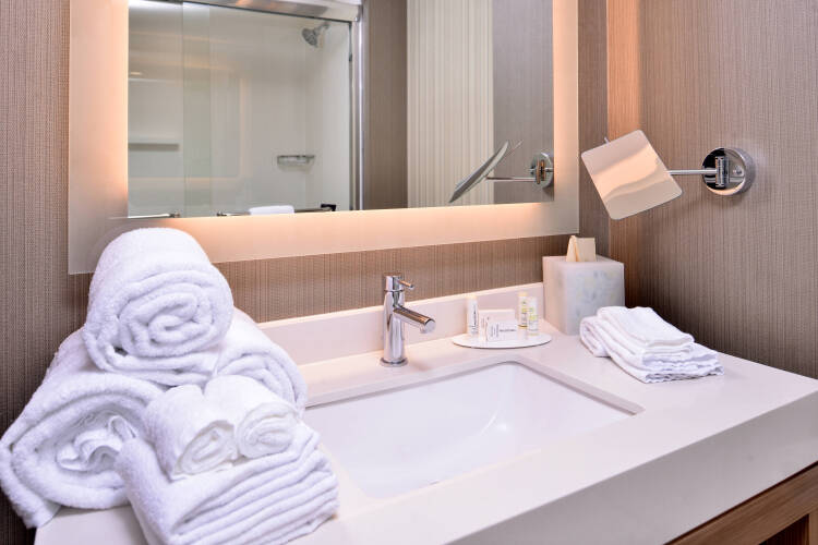 В кондиционируемых номерах (117) отеля Courtyard by Marriott Bloomington предоставляются следующие удобства: кофеваркачайник и сейфы. Постельные принадлежности включают: три простыни и постельные принадлежности премиум-класса. В ванных комнатах есть совмещенные душ и ванна, бесплатные туалетные принадлежности, а также фен. Предоставляется бесплатный высокоскоростной проводной, а также беспроводной доступ в Интернет. В номерах предоставляются стол и бесплатные газеты, а также многоканальный телефон с поддержкой голосовой почты. В каждом номере есть 42-дюйм. ЖК-телевизоры с возможностью просмотра кабельных каналов премиум-класса. Также предоставляются следующие удобства: утюг, гладильная доска и радиочасы. По запросу предоставляется: услуга пробуждения по телефону; обслуживание номеров выполняется ежедневно. Все номера отеля – это номера для некурящих.