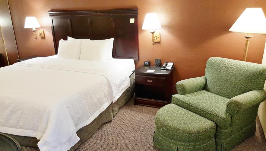 В отеле Hampton Inn Kansas City/Blue Springs вы можете забронировать один из 70 номеров, оборудованных всем необходимым как для краткосрочного, так и длительного проживания. Так, в каждом из них есть ЖК-телевизор с кабельными каналами, компактный столик для ноутбука, кофеварка и кондиционер, а в ванной – косметические принадлежности и фен.