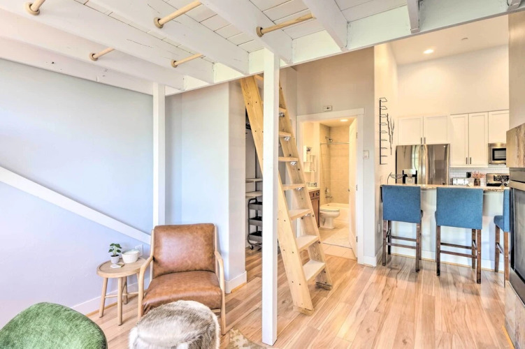 Отель Breckenridge Penthouse Studio: 5 Mi to Skiing!, адрес на карте Брекенридж, 34 Highfield Trail, с описанием номеров и доступностью онлайн бронирования на ресурсе ВашОтель.RU , стоимость проживания и удобства.