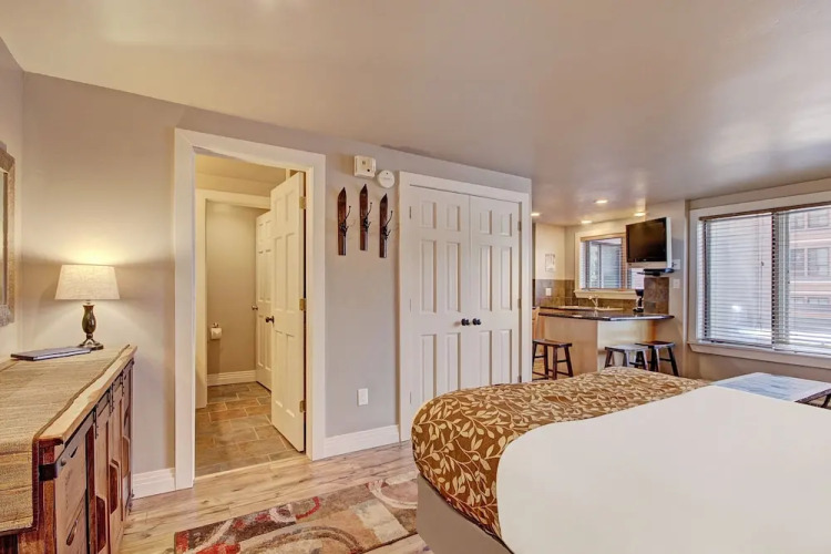 Отель Winter Ski-in/out Studio Sleeps 4, Steps To Historic Main St Studio Bedroom Condo by RedAwning, адрес на карте Брекенридж, 535 S Park Ave, с характеристиками номеров и правом онлайн бронирования на ресурсе vashotel.ru , цены проживания и удобства.