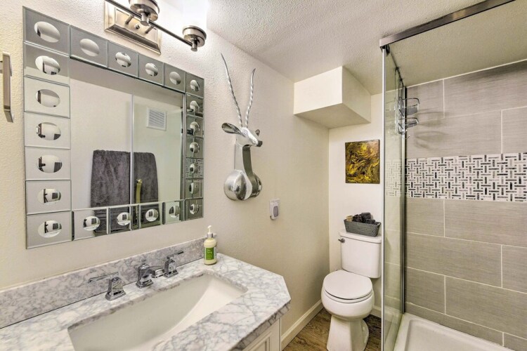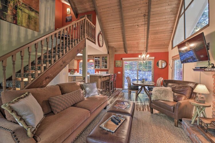Активный или пассивный отдых — выбор за вами. Коттедж «Lake Arrowhead Cabin w/ Decks < 2 Mi to Village!» находится в Буллхейд-Сити. Этот коттедж расположен в 6 км от центра города.