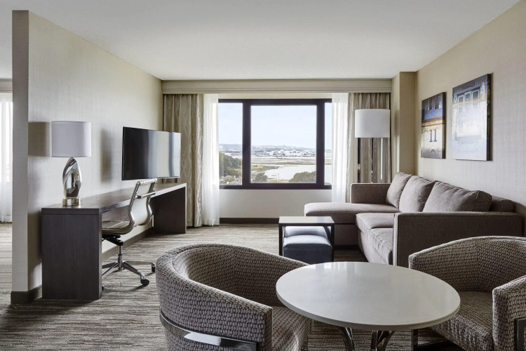 В отеле San Francisco Airport Marriott Waterfront имеется 685 номеров, оборудованных ванной комнатой с полным набором туалетных принадлежностей и феном. В каждом номере есть кондиционер, телефон и телевизор с возможностью просмотра кабельных каналов. По запросу предоставляется холодильник. Предусмотрено обслуживание номеров и ежедневная уборка.