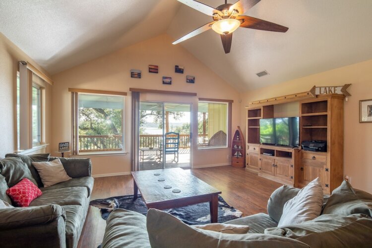 Отель LAKESHORE ESCAPE - 3 Br Home 3 звезды, адрес на карте Каньон-Лейк, 2388 Lakeshore Drive, с описанием номеров и правом онлайн бронирования на ресурсе vashotel.ru , стоимость проживания и удобства.