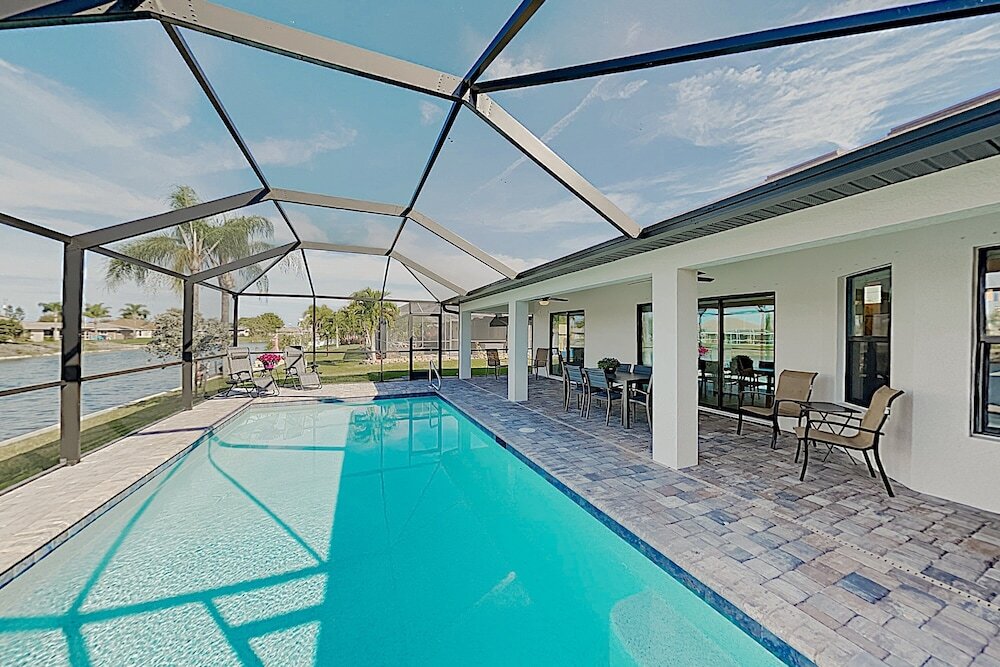 Отель Impeccable Canal-front W/ Lanai & Caged Pool 4 Bedroom Home 4 звезды, адрес на карте Кейп-Корал, 206 NE 21st Ave, с характеристиками номеров и правом онлайн бронирования на площадке vashotel.ru , стоимость проживания и удобства.