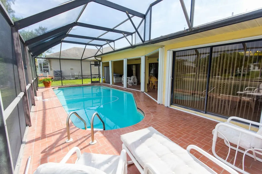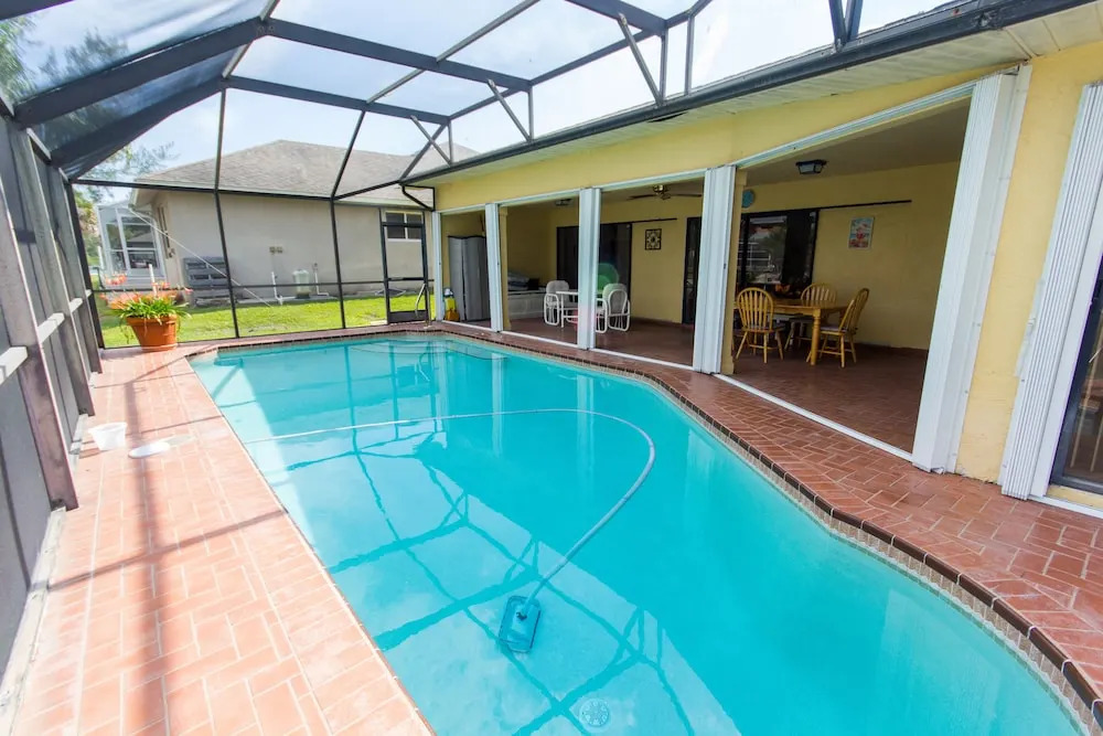 Отель Large Gorgeous 33 Waterfront House With Pool and Dock Boat Kayak Fishing rod 3 звезды, адрес на карте Кейп-Корал, 2723 Sw 5th Ave, с описанием номеров и доступностью онлайн бронирования на сайте vashotel.ru , цены проживания и удобства.