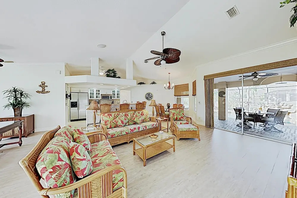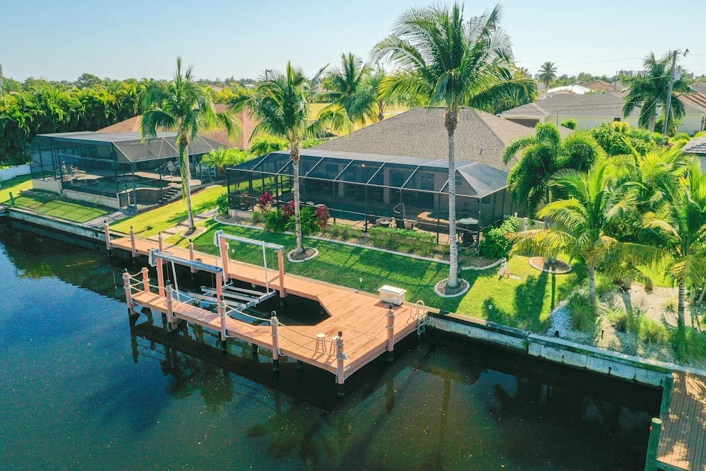 Отель Upscale Canal-side W/ Lanai, Pool & Hot Tub! 3 Bedroom Home 4 звезды, адрес на карте Кейп-Корал, 1913 SW 41st St, с описанием номеров и доступностью онлайн бронирования на площадке ВашОтель.RU , цены проживания и удобства.