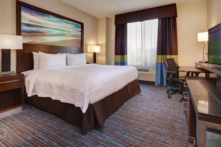 Отель Fairfield Inn & Suites San Diego Carlsbad 2 звезды, адрес на карте Карлсбад, 1929 Palomar Oaks Way, с характеристиками номеров и доступностью онлайн бронирования на площадке ВашОтель.RU , цены проживания и удобства.
