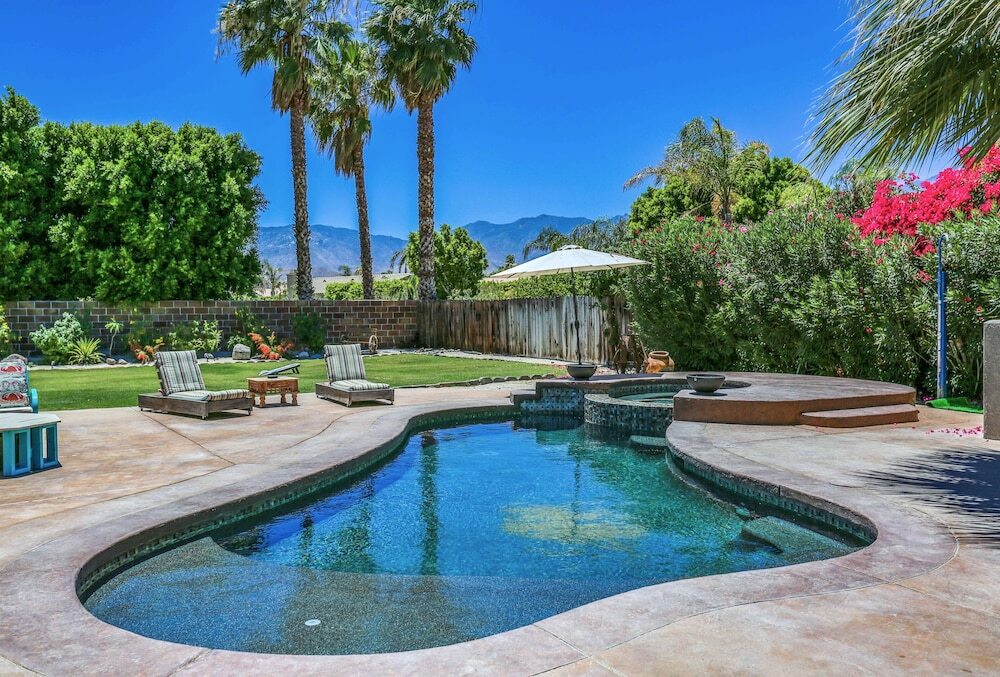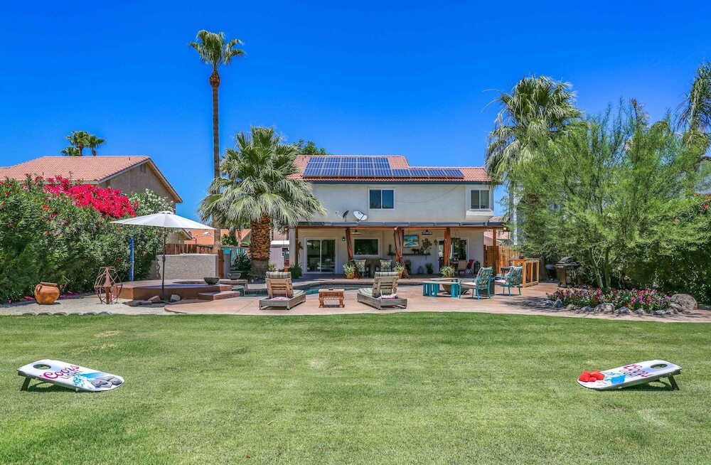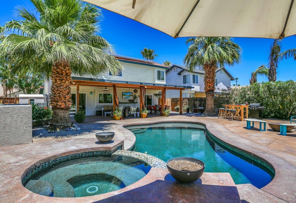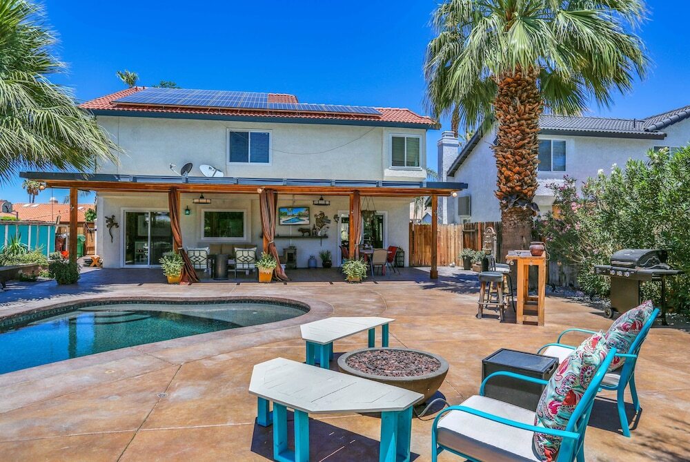 Отель Poolside Sanctuary With Patio, Hot Tub & Firepit 3 Bedroom Home 3 звезды, адрес на карте Кэсидрал-Сити, 68845 Durango Rd, с описанием номеров и правом онлайн бронирования на площадке ВашОтель.RU , цены проживания и удобства.
