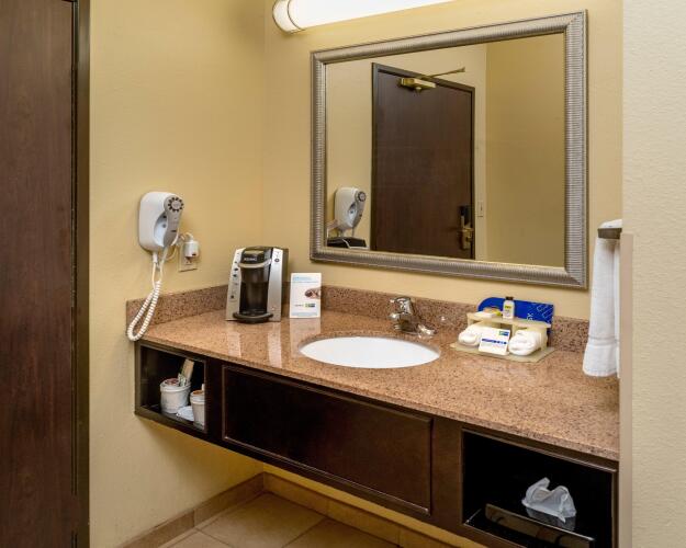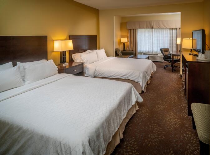 В отеле всего 84 номера. Во всех номерах отеля Holiday Inn Express Suites Charleston есть всё для комфорта: кондиционер, телевизор, телефон, кофеварка и чайник. Также из бытовых предметов есть холодильник, микроволновая печь, утюг и гладильная доска. Ванные комнаты оснащены ванной и феном.