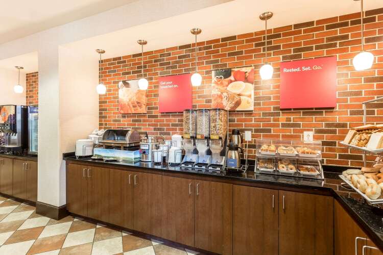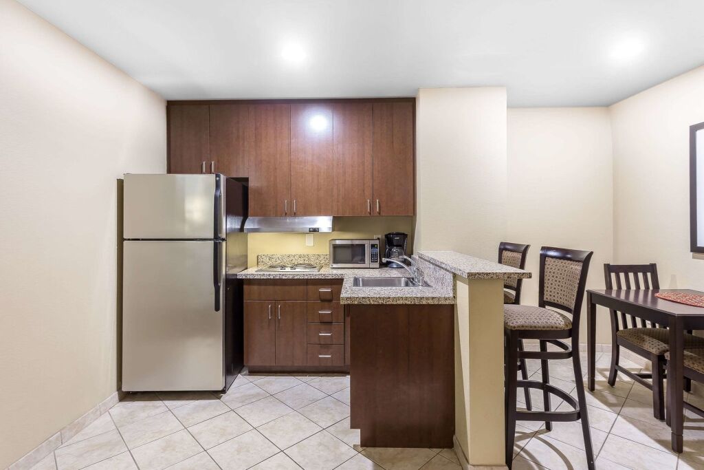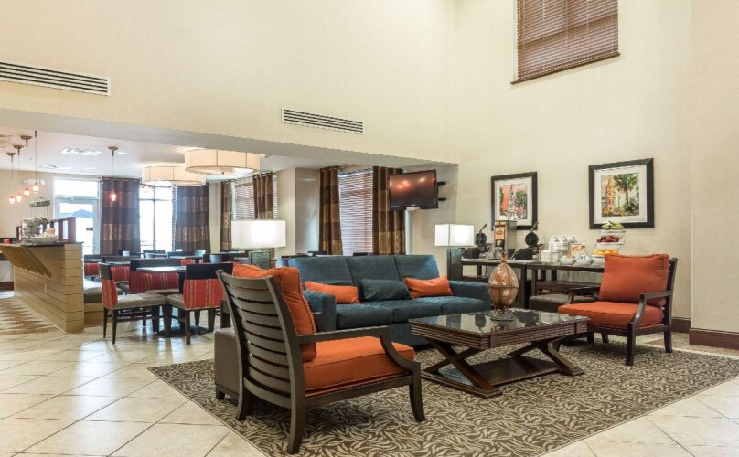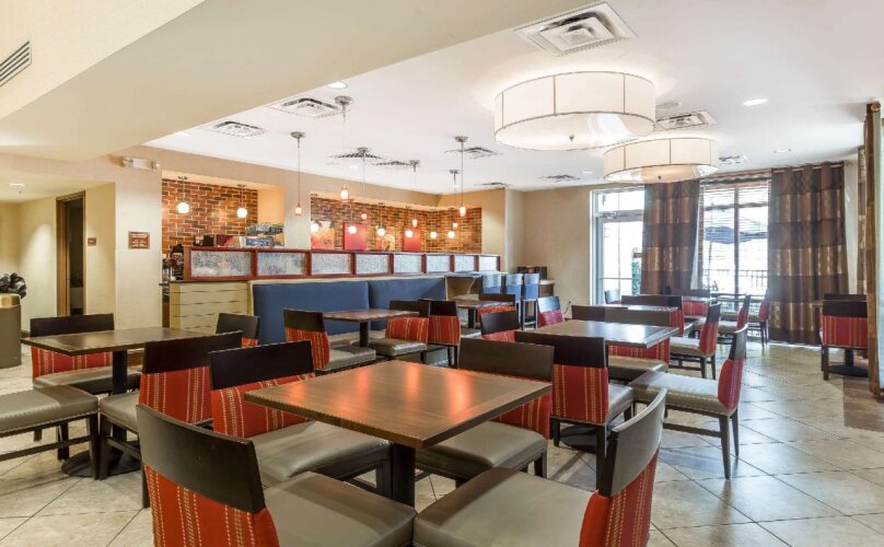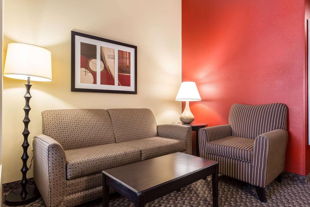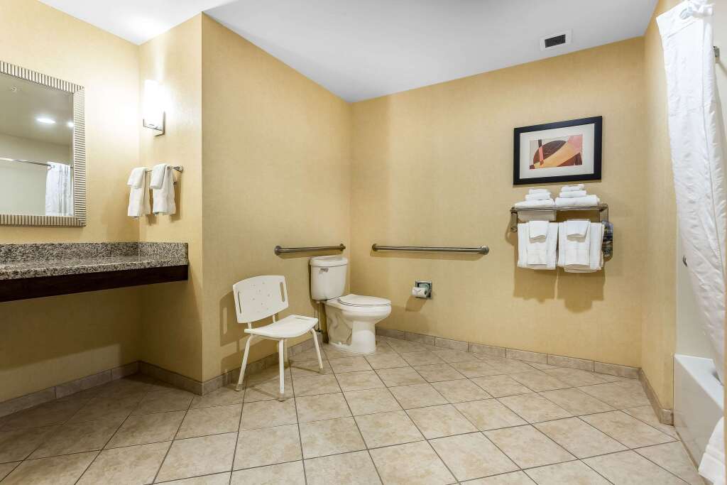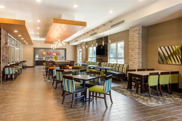 в отеле Comfort Suites West of the Ashley100 кондиционируемых номеров. В каждом оборудована мини-кухня, где вы сможете свободно готовить, так как в нее входит холодильник, микроволновая печь и кофеварка. Из развлечений в вашем распоряжении бесплатный Wi-Fi и телевизор. Из дополнительных удобств можно назвать телефон, фен и утюг.