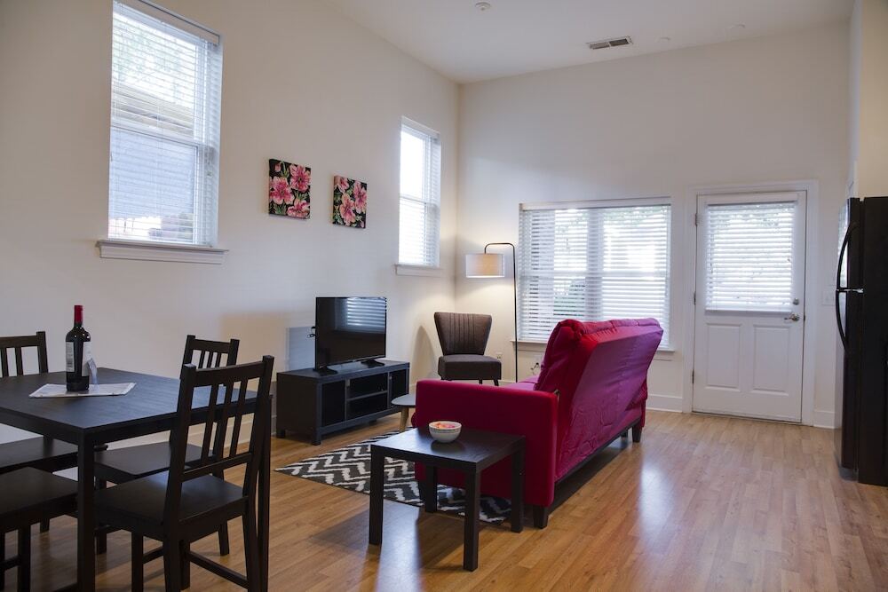 Отель Trendy NODA Apts with Balcony 3 звезды, адрес на карте Шарлотт, 514 35th St., с характеристиками номеров и возможностью онлайн бронирования на сайте vashotel.ru , цены проживания и удобства.