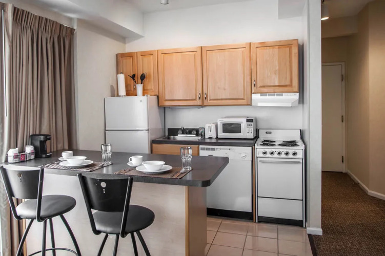 В отеле 119 апартаментов с кухней, оснащенной всей необходимой бытовой техникой и кухонным принадлежностями. Удобства просторных элегантных номеров также включают телефон с автоответчиком, ЖК-телевизор, бесплатный доступ в Интернет и сейф. Из окон открывается прекрасный вид на центр Чикаго.