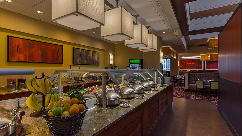 Отель Holiday Inn Chicago-Mart Plaza располагает элегантным итальянским рестораном. Из окон бара, расположенного на 15 этаже отеля, открывается завораживающий вид на город, подаются холодные и горячие закуски, а также имеется богатая карта вин.