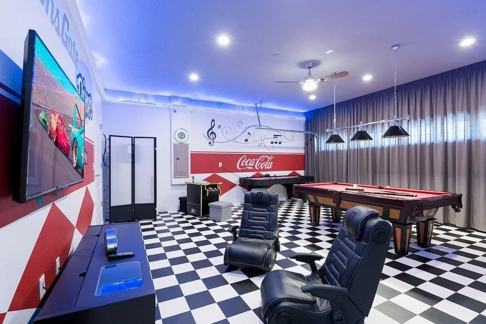 Всё, что нужно для отдыха, на одной территории! Курорт «Luxury Movie Theater Room, Pool Spa & Game Room! 8 Bedroom Home» находится в Фор Корнерзе. Этот курорт располагается в 10 км от центра города. Рядом с курортом можно прогуляться. Неподалёку: Диснеевский тематический парк «Королевство животных», Дисней Холливуд Студиос и Эпкот.