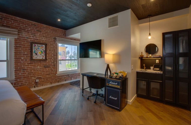 Отель, где хорошо отдыхать перед долгими прогулками. Отель «Venice V Hotel» находится в Венисе. Этот отель расположен неподалёку от центра города. Рядом с отелем — Скейт-парк Venice, Тренировочная площадка Muscle Beach Venice и LA Louver.