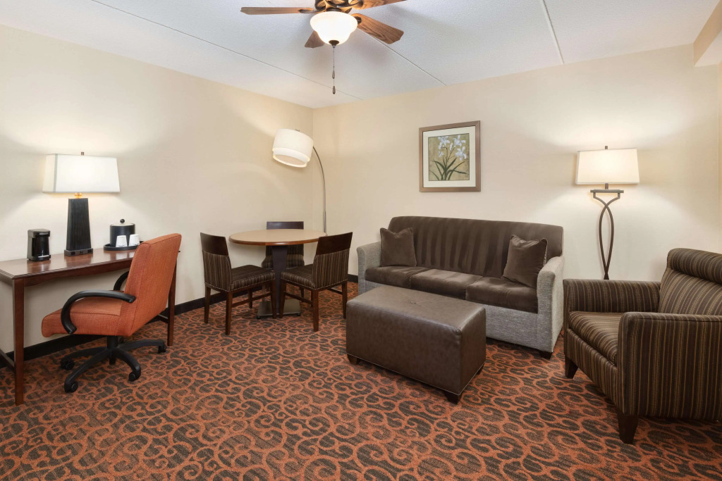 194 номера этого отеля в самом центре Кливленда оснащены удобными кроватями Hampton и подставками для ноутбука. Также в стандартную комплектацию входит кофеварка, гладильные принадлежности и фен в ванной комнате.