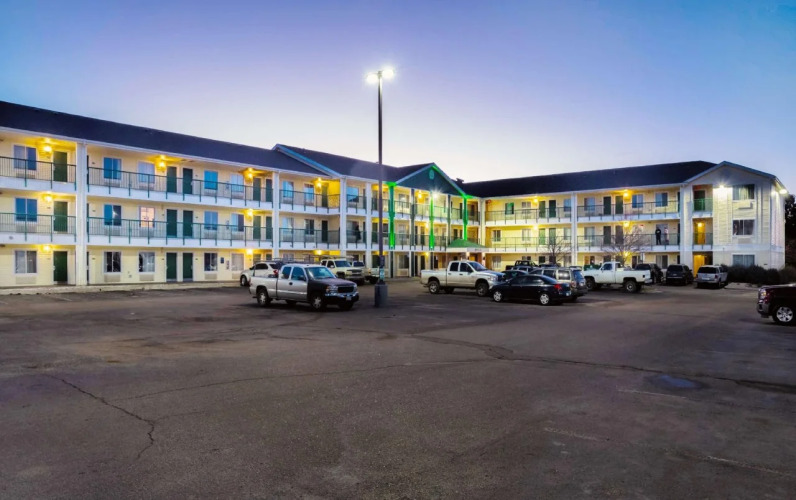 Отель HomeTowne Studios By Red Roof Colorado Springs - Airport 2 звезды, адрес на карте Колорадо-Спрингс, 3490 Afternoon Cir, с описанием номеров и возможностью онлайн бронирования на площадке ВашОтель.RU , стоимость проживания и удобства.